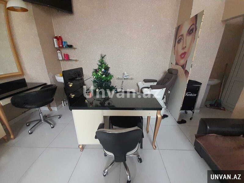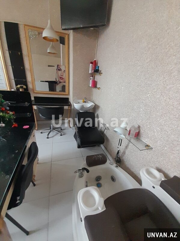Elan nömrəsi: 641489 Binəqədi rayonu 7mkr obyekt yaşayış binasının 1-ci mərtəbəsində yerləşir.məhlə içidir. 1 zal, 1 lazer otağı, 1 kiçik otaq, mətbəx və sanitar qovşaqdan ibarətdir. Zal- 4 güzgü, 4 kreslo, 3 tunpuçka, 1 manikur stolu, 1 pedikur vannası, 1 saç yuma moykası, 2 lüstur, 6 lanpa, 1 divan, 1 su qızdırıcı 100litrlik, 1 qeydiiyat masası kreslosu ilə, 1 quşetka, 2 şkaf, 1 adi şüşəli şkaf