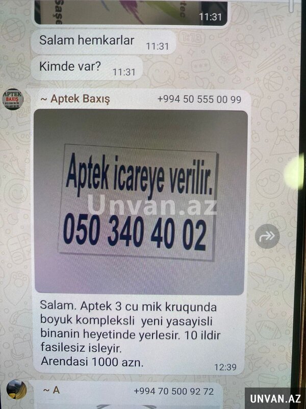 3 cu mik kruqunun yaxinliginda Komfort mtk nin binasinda aptek her birnseraiti ile arendaya verilir.