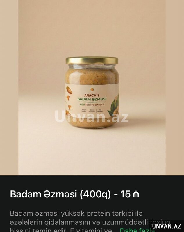 Badam. Əzməsi. Satışı bizdə vardı satışı mövcuddur satılır bizdə. 400gram. 15 manatdan