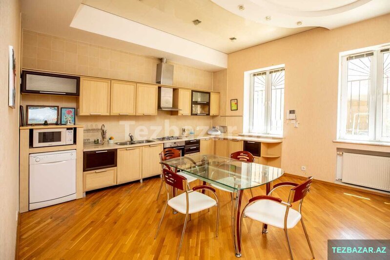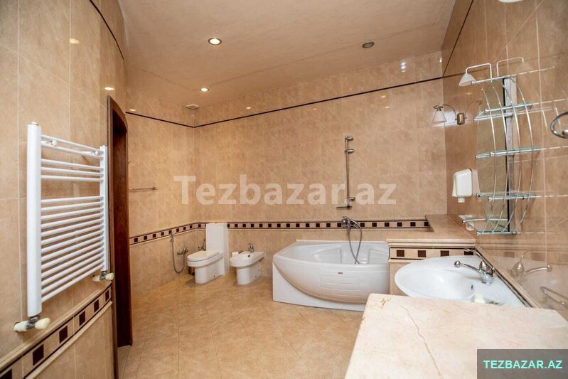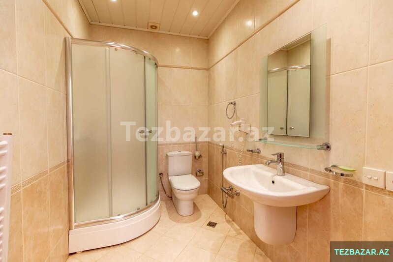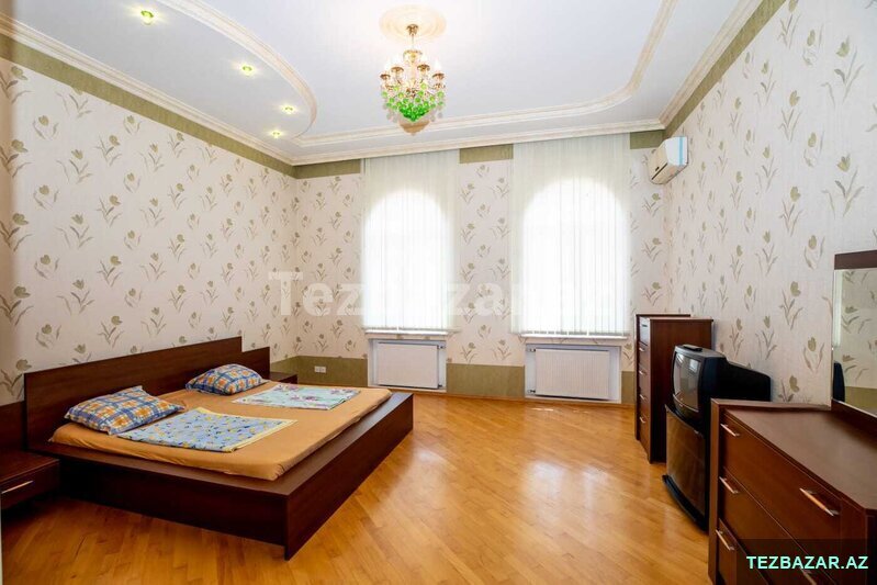 Badamdarin Mərkəzində, Gəlin Qaya Restoranin arxası, Aef hotelinin yaxinliqinda 8.3 sotda, 404.7kv.m sahəsi olan 3 mərtəbəli 7 otaqlı; 5 yataq otağı, 100kv.m zal, 30kv.m xoll, 4 san.qovşağı, ayrıca qarderob otağı, 27kv.m mətbəxi, otaqlarda və koridorda divarda quraşdırımış şifonerlər və digər mebellər, dəniz mənzərəli, həyətdə evdən kənarda qazanxanası"Dəmirtöküm kotyol və 300 litr boyler", 2 besedkası, manqalxanası və 63kv.m sahəsi olan ayrı tam təmirli və hər şəraiti olan 2 otaqlı qonaq evi.