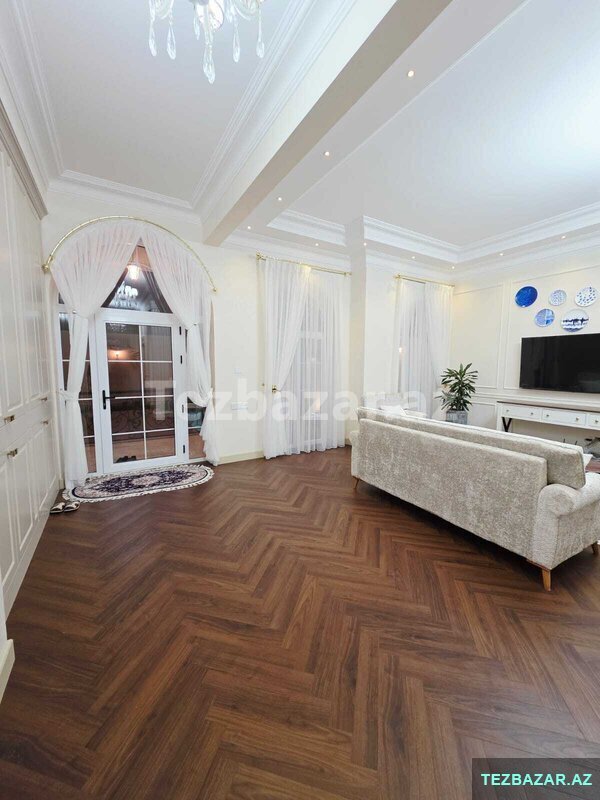 Həyətində Hovuz, Sanuzeli, dekorativ ağacları, işıqlandırma sistemləri, distansiyonu qapisi Mövcuddur