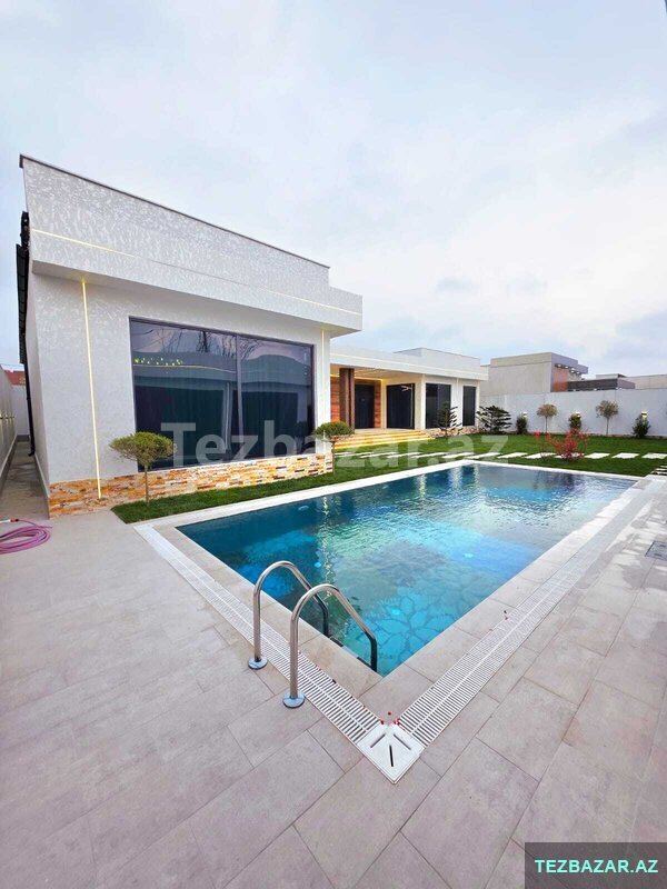Həyətində Filterli Hovuz, bisetka, manqalni, yay qiw metbexi, dekorativ ağacları, işıqlandırma sistemi, 2 masinli parking, distansiyonu qapisi, polis muhafize, Sanuzeli, Mövcuddur