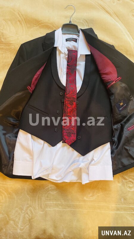 Bəylik kostyumu satılır. 1 dəfə toyda geyinilib. Kəmərdən başqa bütün aksessuarları var. S-M ölçüdə, çəkisi 55-70 kilo olan bəylərə gedər. Qiyməti 50 manat.