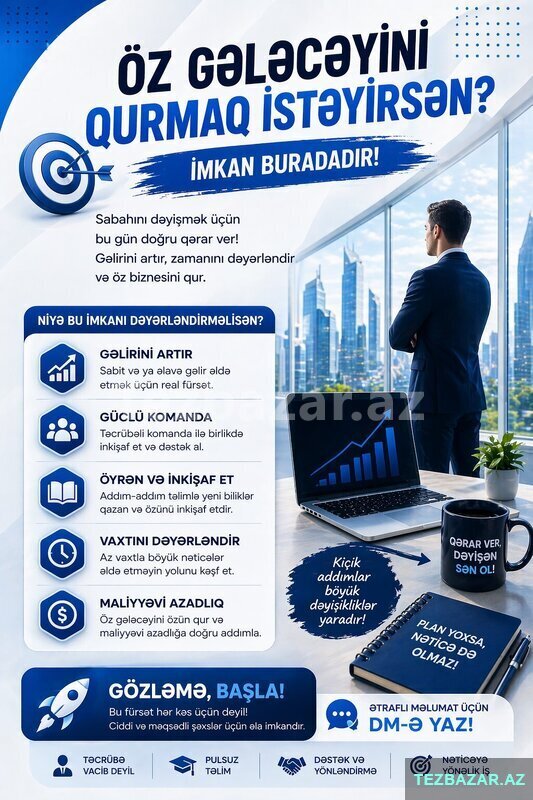 Qeyd: İş şəbəkə marketinqi əsaslıdır (satış və komanda quruculuğu).