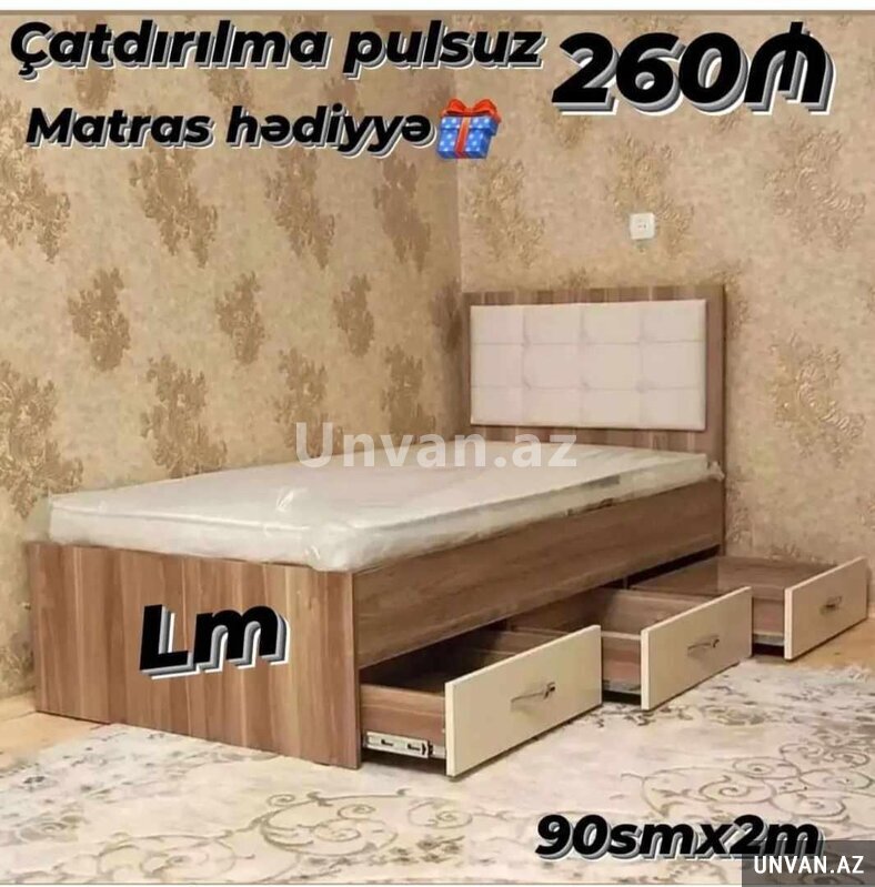 *Tək çarpayı* _*SİFARİŞLƏ VƏ YENİ*_ *Qiymət : 260₼*(1ədədi) Ölçü : *90smx2m* __________________________ Material : 18'lik *Təhvil ən qısa zamanda * *Çatdırılma və quraşdırılma şəhər daxili pulsuz*