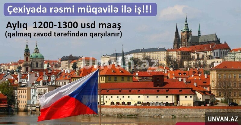 Çexiyada müxtəlif perspektivli zavod və fabriklərdə işlə təmin edirik.Aylıq maaş 1200-1300 usd əlavə iş saatları var və aylıq bonuslar hesablanır.Qalmaq və gündə 1 dəfə qidalanma zavod tərəfindən qarşılanır.2 illik oturum izni verilir siz bu sənəd vasitəsilə rahat şəkildə avropanın 28 Ölkəsinə səyahət etmək hüququna sahib olursunuz. Ətrafli məlumat üçün qeyd olunan nömrə ilə əlaqə saxlaya bilərsiniz.Whatsapp aktivdir.