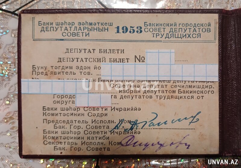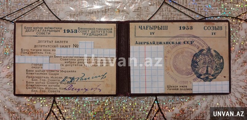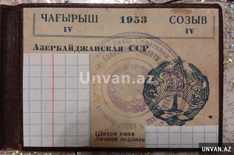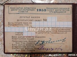 Azərbaycan SSR Ali Sovetinə 1953-cü il (IV çağırış) Deputat bileti.