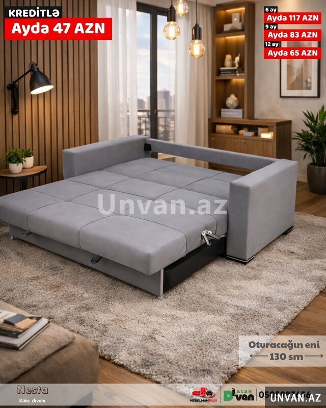 Sərfəli kredit şərtləri ilə Rumina amerikanka tipli divan-çarpayı modelini tək şəxsiyyət vəsiqəsi ilə kreditlə əldə edə biləcəksiniz.