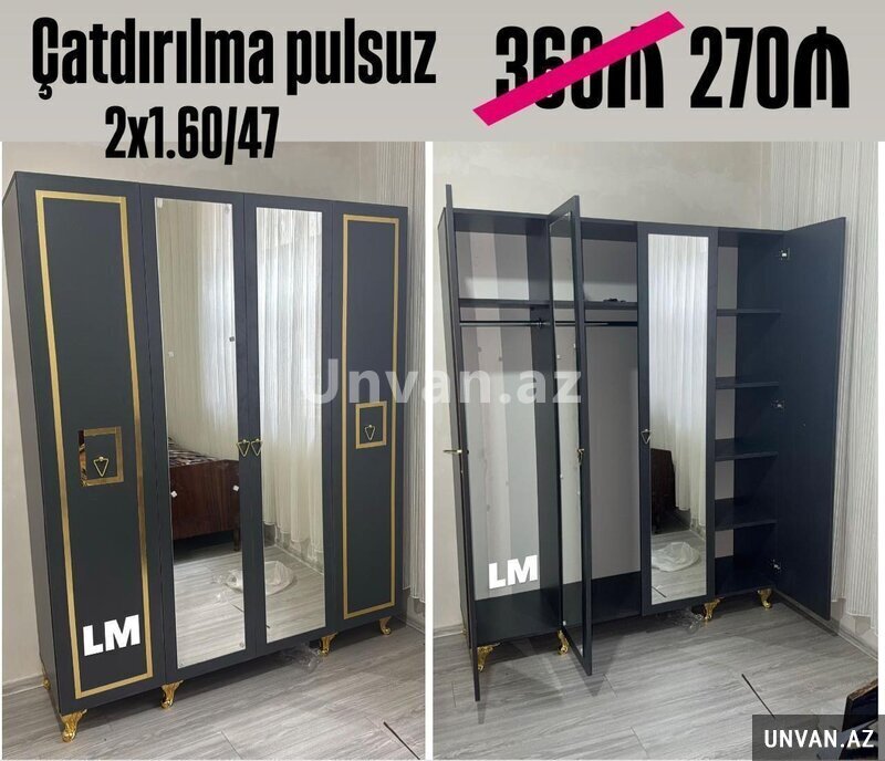 Dolab paltar şkafı Elan nömrəsi: 1131207 Elanın növü MebellərQiyməti 270 Azn *Çatdırılma+quraşdırılma xidməti şəhər daxili pulsuz* *Dörd qapılı dolablar təmiz laminatla* Qiymət : *270₼* *Ölçü : 2 x 1.60 x 47* _*RƏNG SEÇİMİ SƏRBƏST*_ *Təhvil qısa zamanda Ucuz mebel (Bütün Elanları) Bakı şəhəri 0508098XXXnömrəni göstər Paylaş Paylaş Tarix: 25.12.2025 ViP elan et Elanı irəli çəkElana düzəliş etElanı sil
