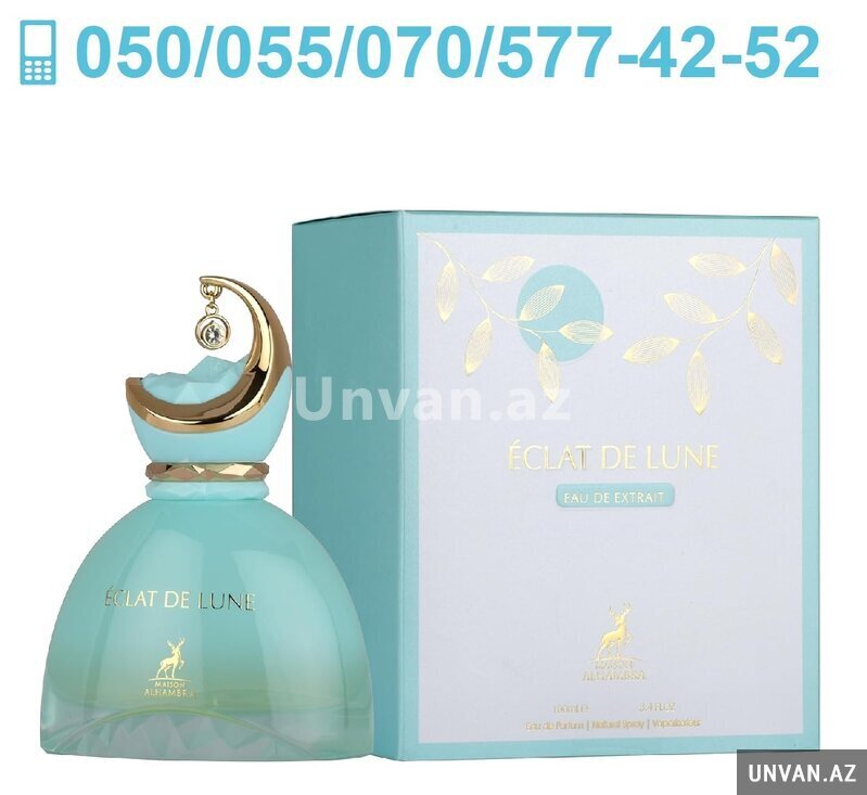 Eclat De Lune 100ml Eau De Parfum For Women by Maison-Alhambra. Zərif, cazibədar və yadda qalan qadın qoxusu axtarırsınızsa, Eclat De Lune mükəmməl seçimdir. Bu ətir məşhur Maison-Alhambra firmasının orijinal Dubay istehsalı məhsuludur. Qutuların üzərində orijinal ştrix-kod və Maison-Alhambra firmasının rəsmi holoqraması mövcuddur. Şəkillərdə gördüyünüz kimi qablaşdırması olduqca gözəl və keyfiyyətlidir – əsl hədiyyəlik seçimdir. Keyfiyyəti və qalıcı qoxunu hiss etmək üçün seçim edin – fərqi özünüz görün. Həm gündəlik istifadə, həm də xüsusi günlər üçün ideal olan bu ətir sizi fərqli və özünəinamlı göstərəcək.
