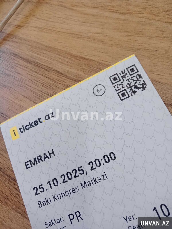 Emrahin konsertine 3 eded bilet satilir. Biletlerin hamisi ardicil olaraq yanbayan oturacaqlardadir ve orta siraya yaxin yerdedir. Biletlerin oz qiymeti 130 manatdir. Her biri 100 manata satilir. Tecili ishimiz cixdiqindan satilir. Qiymetde razilashmaq olar.
