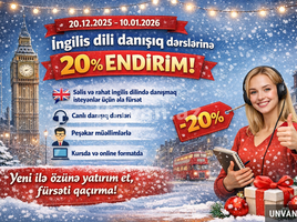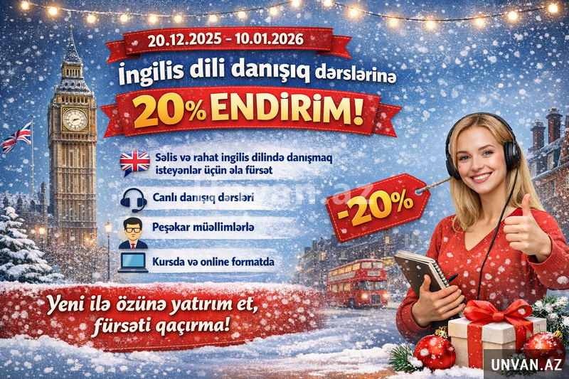 20.12.2025 tarixindən 10.01.2026 tarixinə kimi İngilis dili danışıq dərslərinə 20 faiz endirim