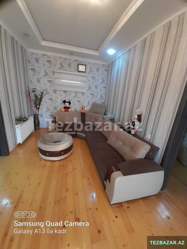 Ev bir böyük zal 3otaq 1mətbəx hamam və sanitar qovşaqdan ibarətdir.Suyu qazı işığı interneti daimidir.Su artezian suyudur.İstilik sistemi kombidir.Kamerası var.Təmirli gir yaşa evdir