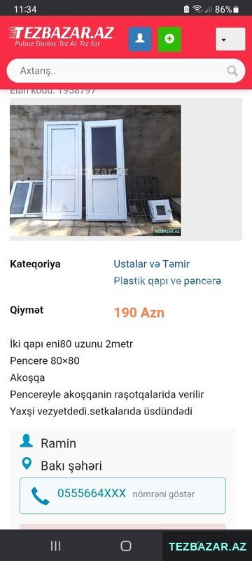 Elan kodu: 62003051Kateqoriya Usta xidməti