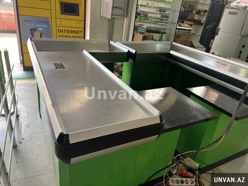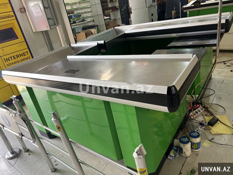 Yasil rengde ela veziyyetde kassa stolu satilir.