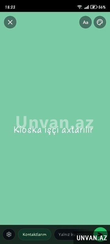 Kiosk əhmədlide yerləşir yaxın ərazilərdə qalanlara üstünlük verilir maaş gündəlik olaraq 16 azn verilir