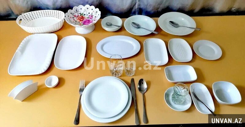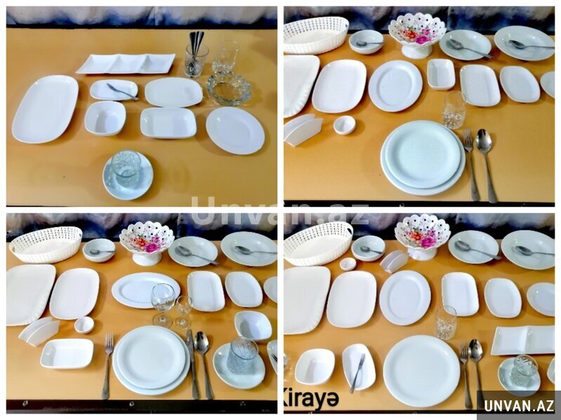 Müxtəlif tədbirlər üçün nəzərdə tutulmuş qab-qacaq dəsti icarəyə verilir. Dəstə boşqablar, kasalar, çəngəllər, bıçaqlar, qaşıqlar, stəkanlar və digər qablar daxildir. Qablar keyfiyyətli materiallardan hazırlanmışdır və ziyafətlər, ad günləri və digər xüsusi günlər üçün uyğundur.