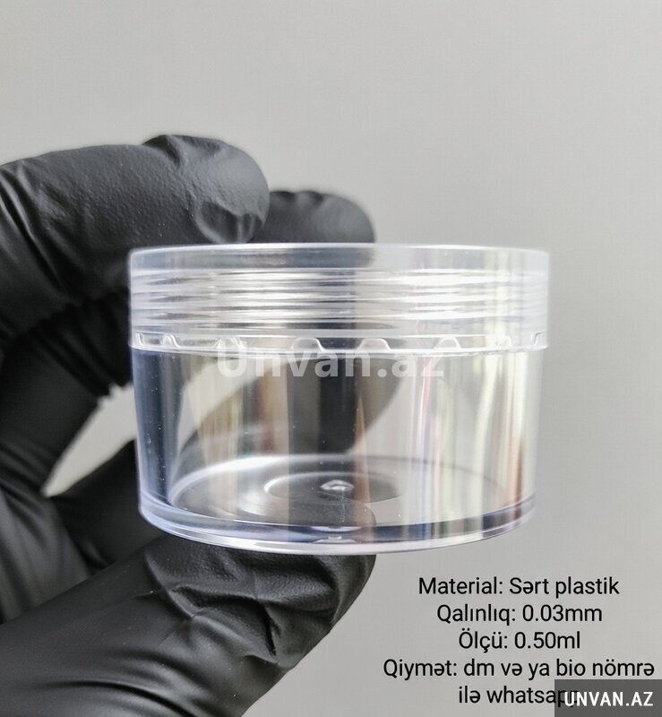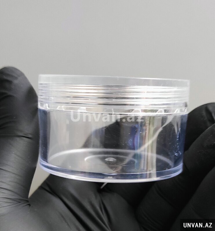 Sert plastik olan 50ml şəffaf (şüşə deyil)