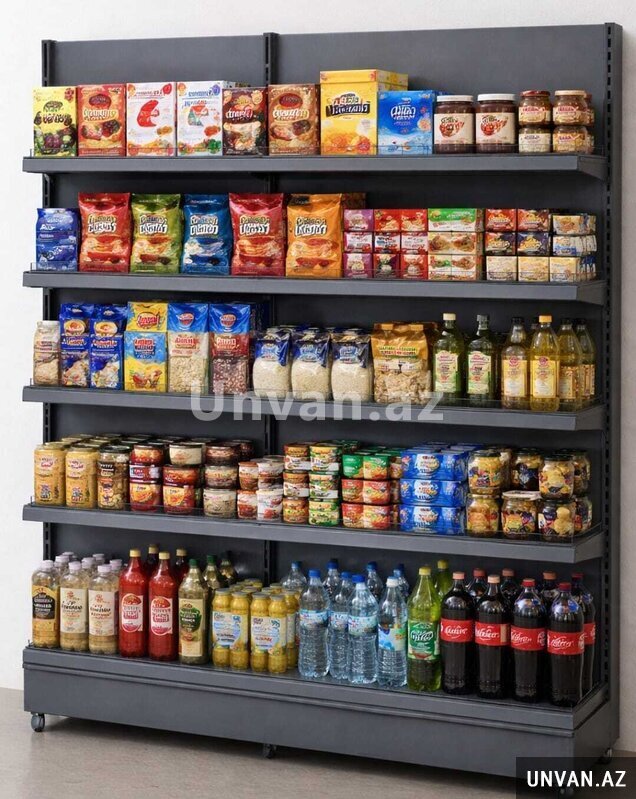 4 rəflidir alt rəflə ilə birlikdə 5. Rəflərin yeri dəyişilib yerdəyişmə tənzimlənə bilir.Dərinlik 30-40 ölcüdə alt rəf 45.Profil \2 ilə.Olcü əasindada istənilən sifariş qəbul olunur.