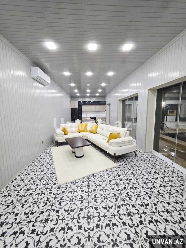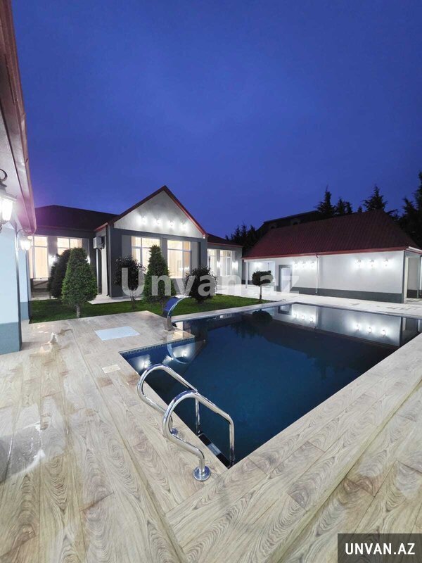 Həyətində Filterli Fantanlı Hovuz, cambalokonlu qonaq evi, bisetka, kamera sistemi, qaraj, manqalni, dekorativ agaclar, distansiyonu qapisi, isiqlandirmasi Mövcuddur