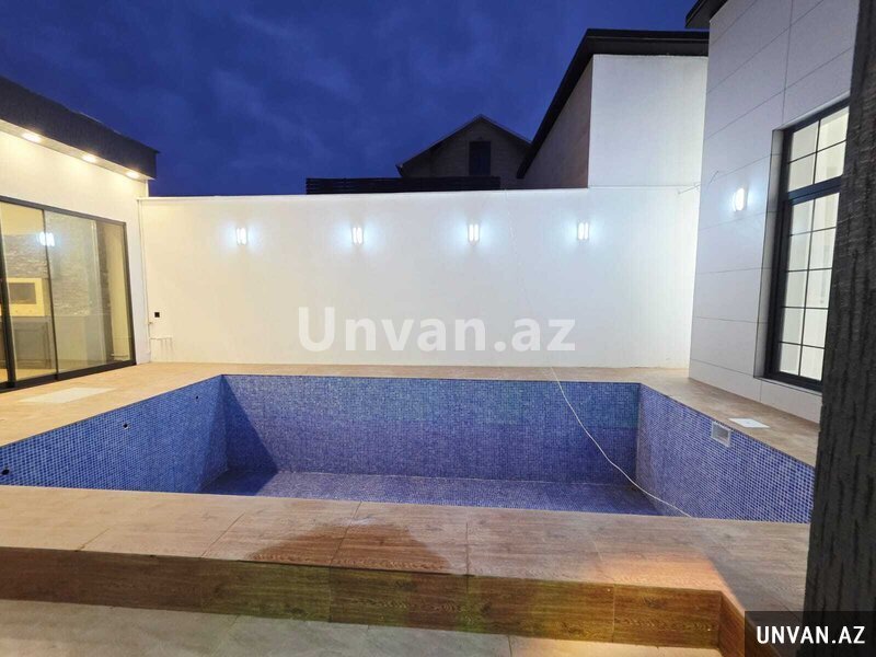 Həyətində hovuz, besedka, dekorativ ağaclar, cambalkon, manqalni, işıqlandırması, mövcuddur