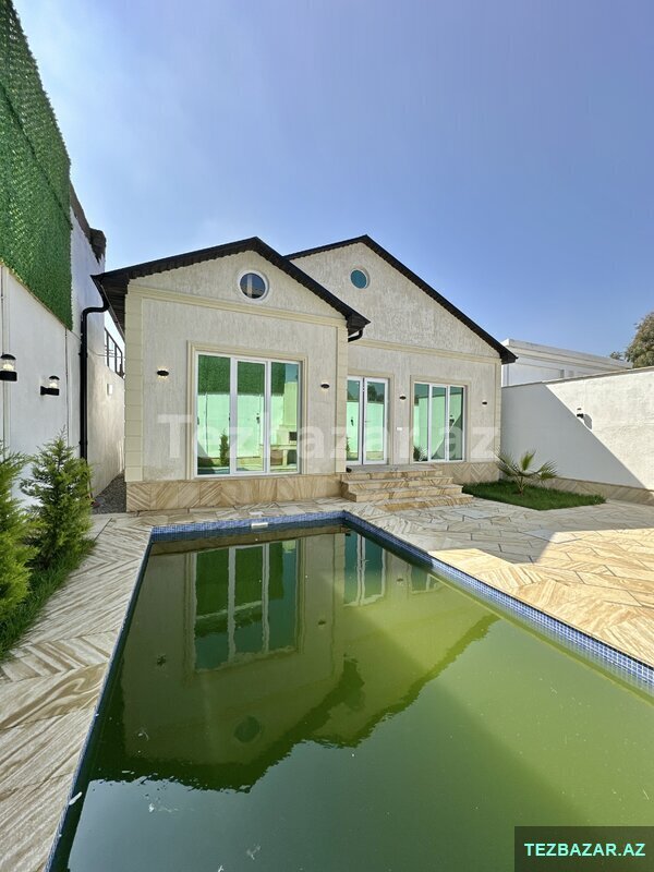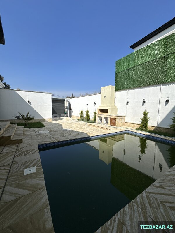 Mərdəkan gəsəbəsi, mərkəzdə, Yesenin küçəsində, 3 sotda yeni inşa edilmiş bag evi satılır, 120 kv.m, 1 zal, 3 yataq, 2 s/q, isti döşəmə, kombi istilik sistemi, filterli hovuz, manqal, avto üçün yer, qaz, su və işıq daimidir. Çıxarışı var. Bag yaşayış massivində yerləşir və il boyunca yaşamaq üçün yararlıdır. Yolu asvalt örtüklüdür.