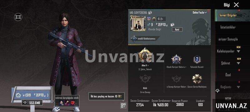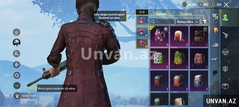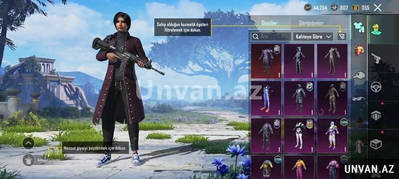 Satılır PUBG Mobile şəxsi hesab (random deyil). Hesab Avropa serverindədir və aktiv şəkildə oynanmışdır. Səviyyə 56. Hesabda çox sayda nadir və epik geyimlər mövcuddur, o cümlədən uzun palto tərzində nadir outfit-lər, tematik kostyumlar və fərqli kombinlər. Bir neçə nadir çanta (backpack skin), baş geyimləri və aksessuarlar var.