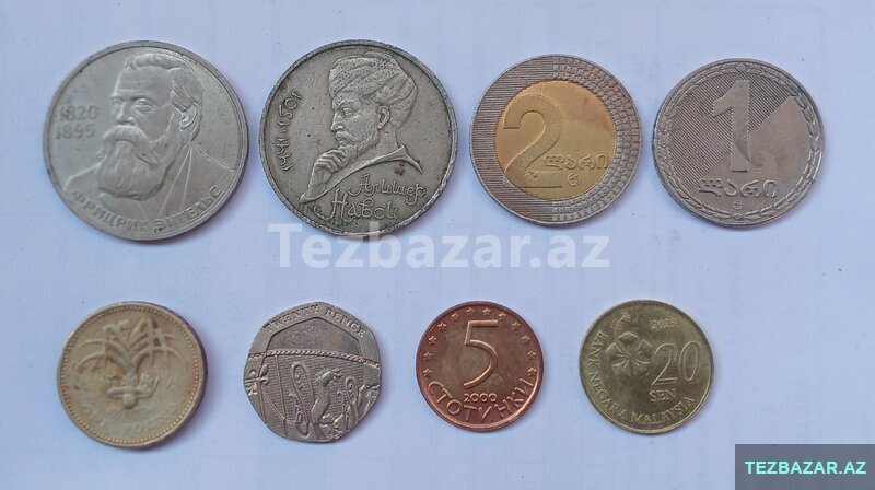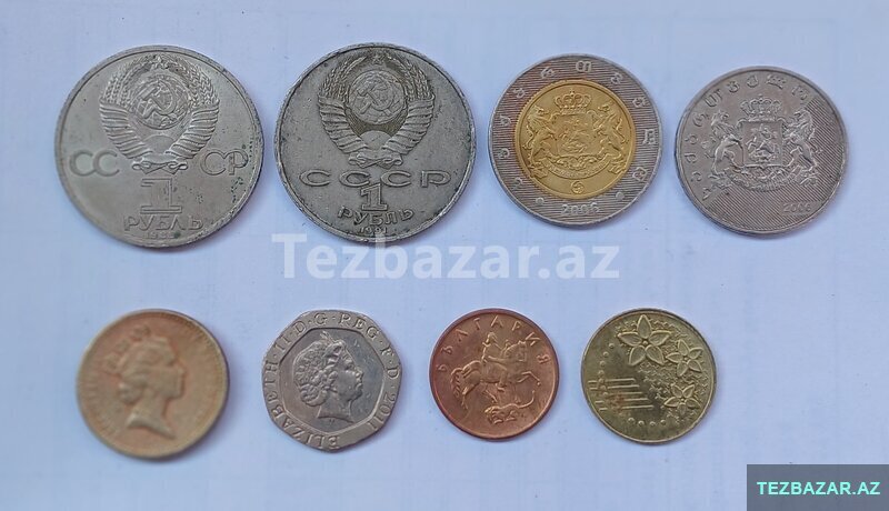 8 ədəd müxtəlif sikkə.