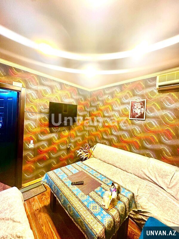 Təmirli və tam əşyalıdır. Əşyalardan kondisioner, TV, soyuducu, qəlyan aparatları, kamera sistemi, nərd-damino, divan dəstləri, qab-qaşıq və s var. Gəliş-gedişin çox olan yerində yerləşir.