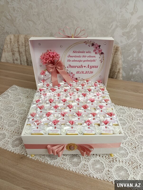 Nisan heri konfet xoncalari sifarisle hazirlanir.Sifarisler en az 2-3 gun onceden goturulur.Sifaris ucun whatsapa yaza ve ya zeng ede bilersiniz.