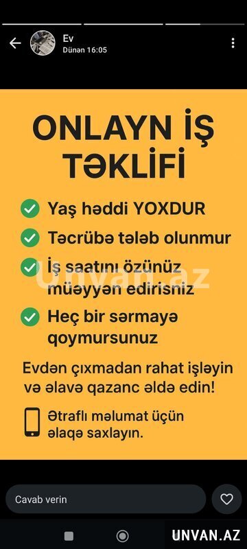 İş təklif edirəm.