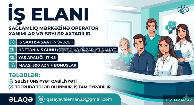 Sağlamlıq mərkəzinə operator xanımlar və bəylər axtarılır.
