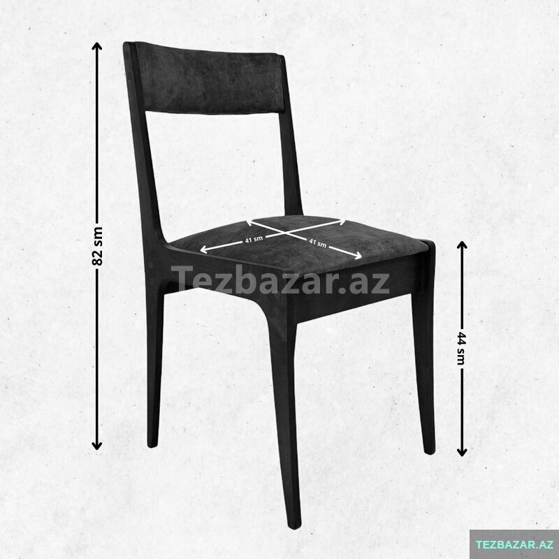 Ölçüləri: Oturacaq hissə: 41*41 sm, oturacaq hissənin yerdən hündürlüyü 45 sm. Stulun hündürlüyü 82sm.