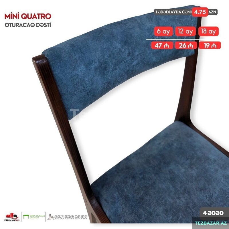 Dəstə 4 oturacaq daxildir.