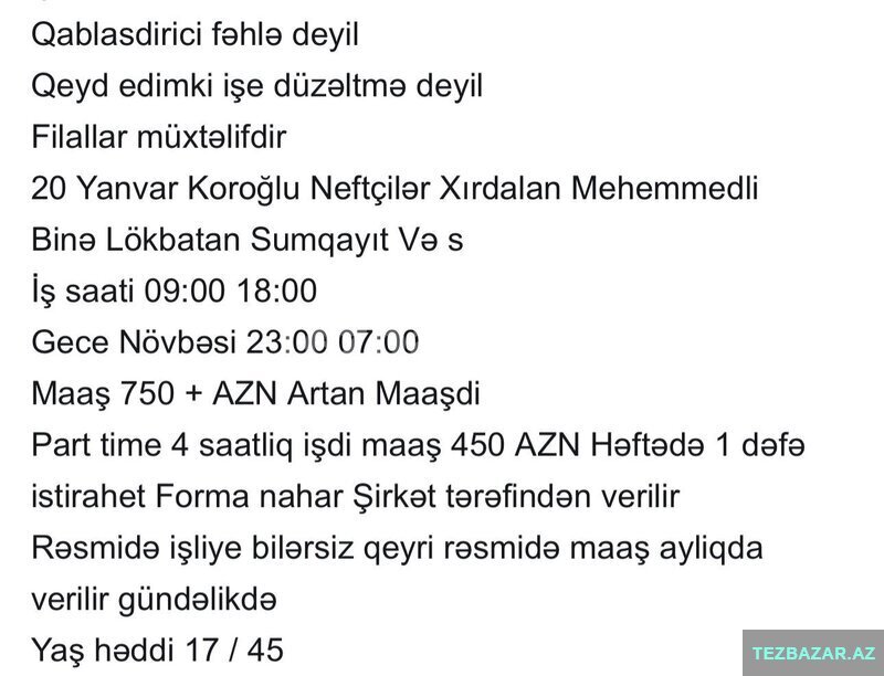 İs hem tam saat aya 750 azn