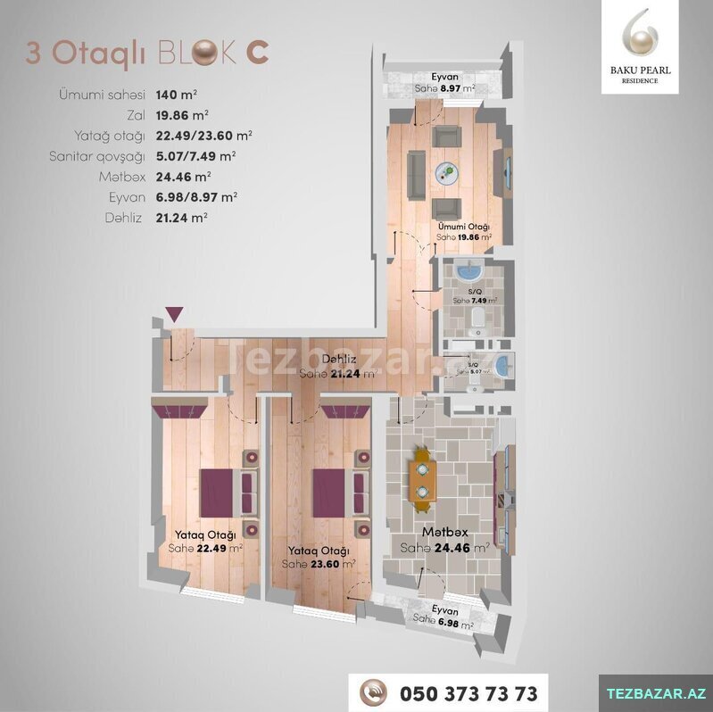 • Otaq sayı: 3 otaq (qanuni)
