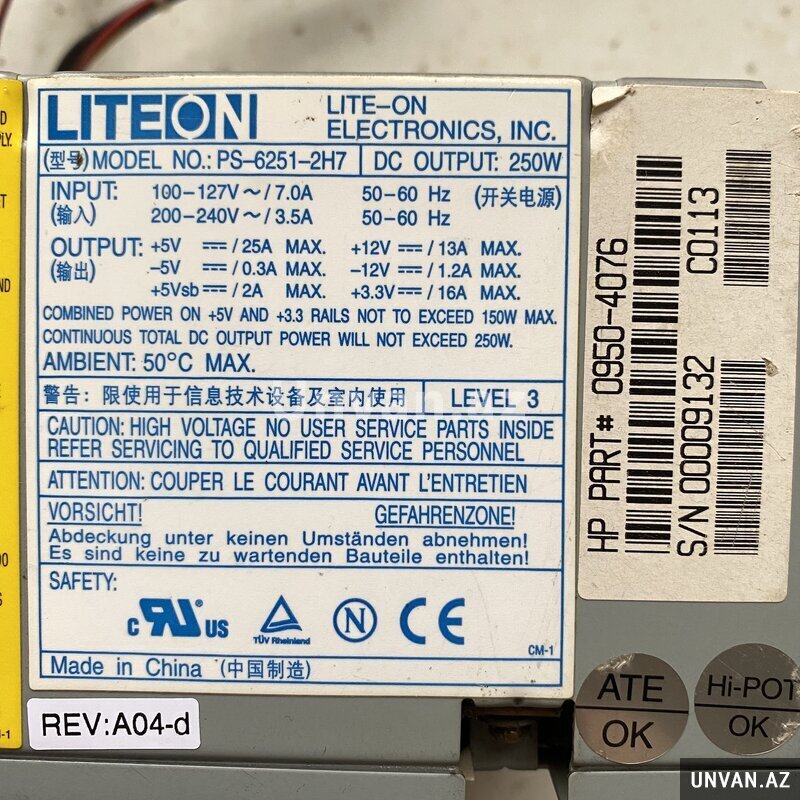 Kohne keyfiyetli HP qida bloku. Tam işlək vəziyətdə