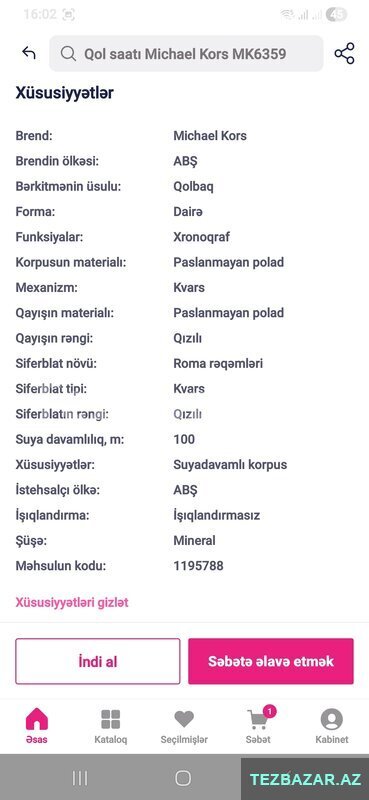 Elan kodu: 62000593Kateqoriya Saat və Zinət əşyaları