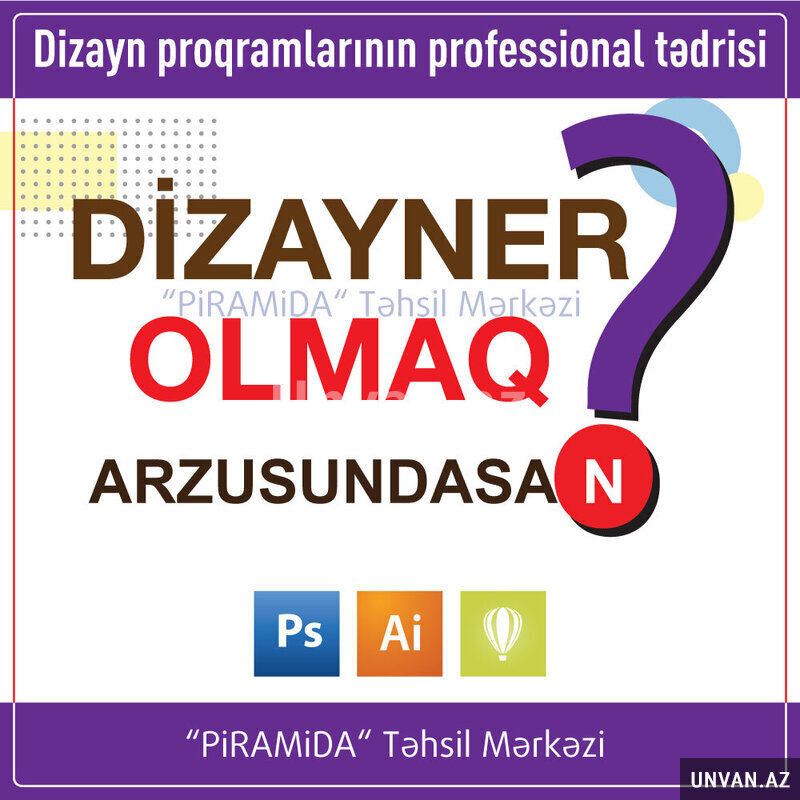 Piramida Təhsil Mərkəzi "Qrafik Dizayner" peşəsinə yiyələnmək istəyənlər üçün qrafik dizayn proqramları üzrə kurslar təşkil edir.