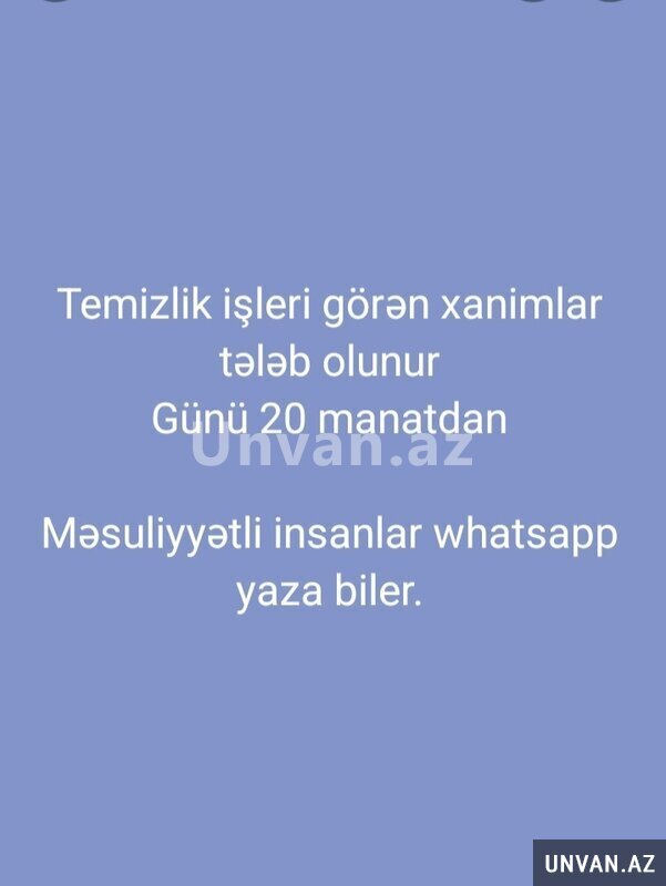 Temizlik işleri görən xanimlar tələb olunur