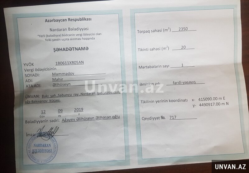Адрес: Nardaranda bağları torpağ sahəsi