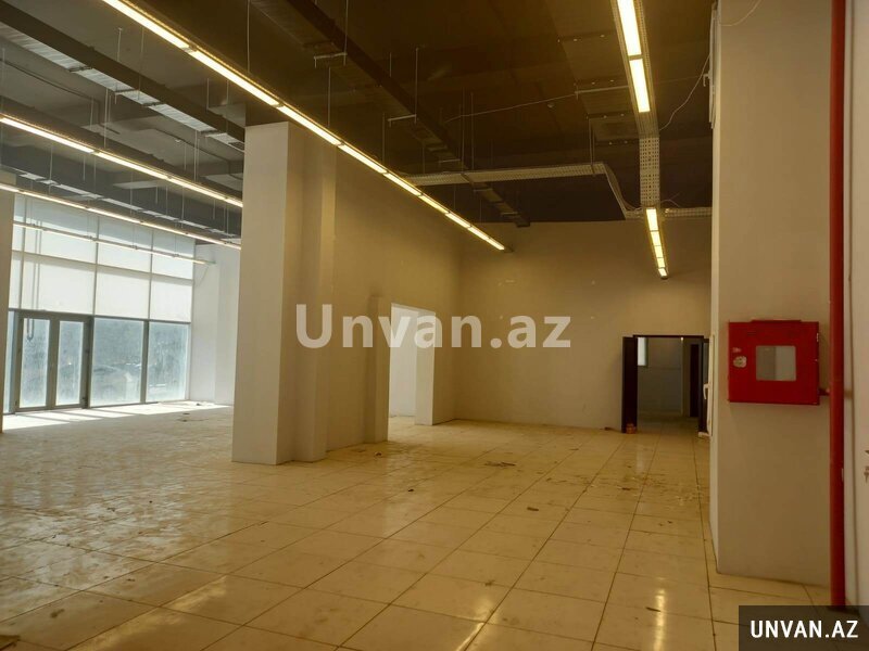 Ümumi sahəsi 840 kv.m. olan obyektin böyük vitrin şüşələri və hündür tavanı var.