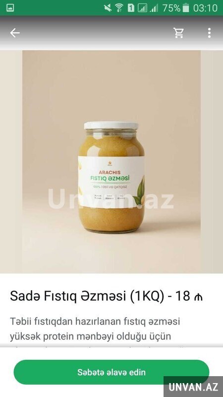 Sadə fıstıq əzməsi satılır 1-kg. 18 manatdan. Satılır fıstıq əxməsi