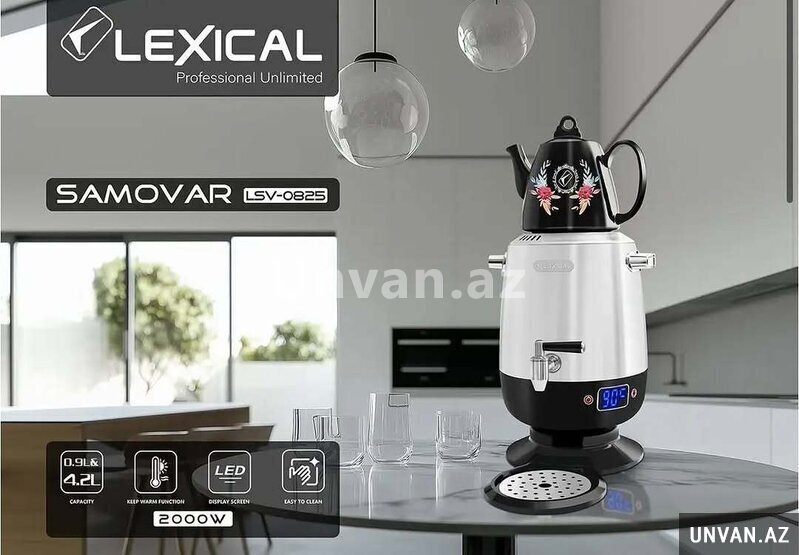 Samovar Lexical LSV-0825 – çay və isti su hazırlamaq üçün zərif həll. İncə gümüşü gövdə bu 4.2 litr həcmindəki elektrik çaydanına zərif görünüş verir.