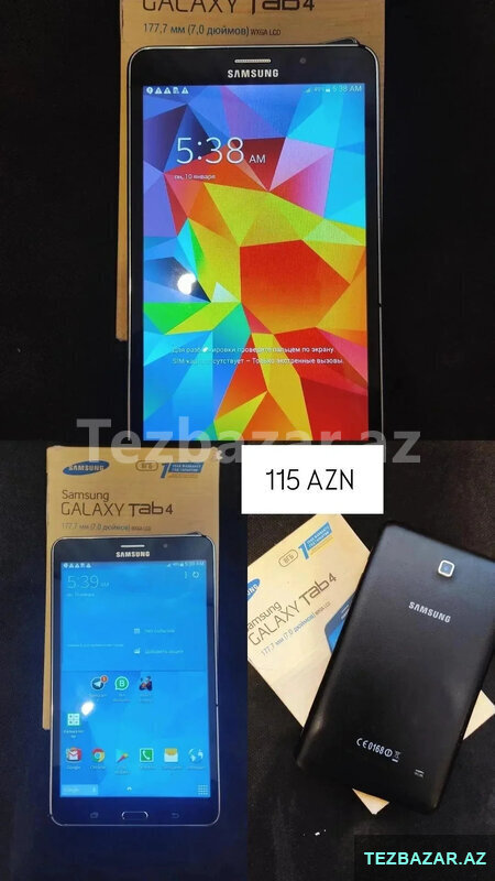 Samsung Galaxy Tab 4- 115 ₼ satılır, planşet İdeal vəziyyətdədir , karobkasida var, seligeli vəziyyətdədir.