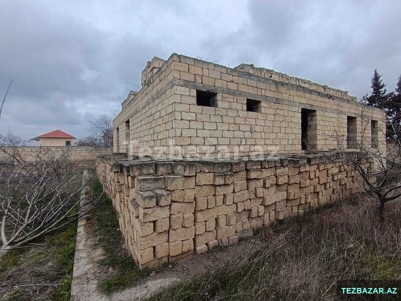 Torpaq sahəsində yarı tikili ev vardır