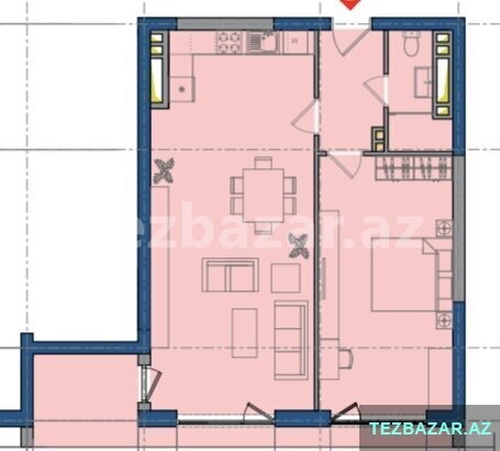 Eyni zamanda, mənzildə geniş pəncərələr, geniş eyvan vardır.