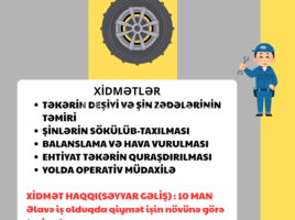 Zabrat ərazisində yerində təkər xidməti. Yolda qalanlar və ya iş yerindən/evdən çıxmadan təkər işlərini həll etmək istəyənlər üçün mobil servis.