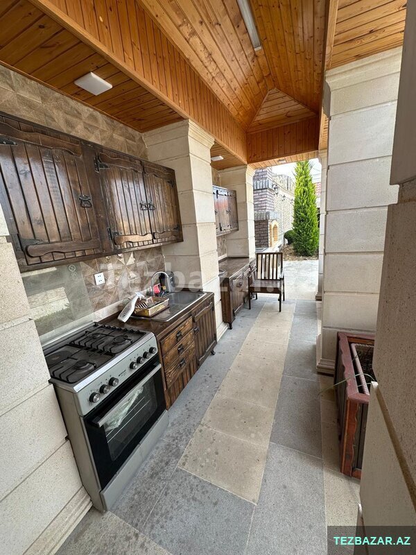 Villanın həyətində — Pultla idarə olunan jaluz qapı , sanitar qovşağı , vanna otağı + duş kabini , saxlanc otağı , yay’qış mətbəxtdi , manqal’ni , söhbətgah , daşma şəlalə… bir sözlə əsil bağ evi…Həyət tamet daşlarla döşənilib… Villanın üst dekorasiyası və həyətin hasarları təbii daşlarla , yüksək keyfiyyət və incəliklə işlənib…..