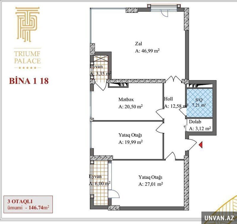 - Sahə : 146 kv/m